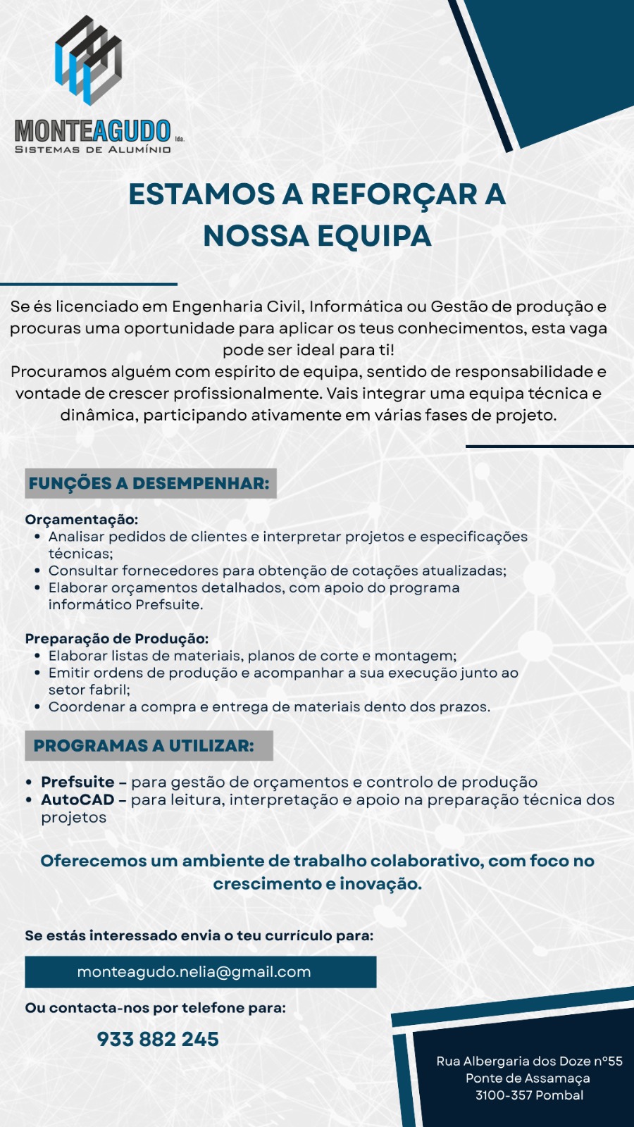 Construções Monteagudo admitem licenciado em Eng. Civil, Informática ou Gestão de Produção